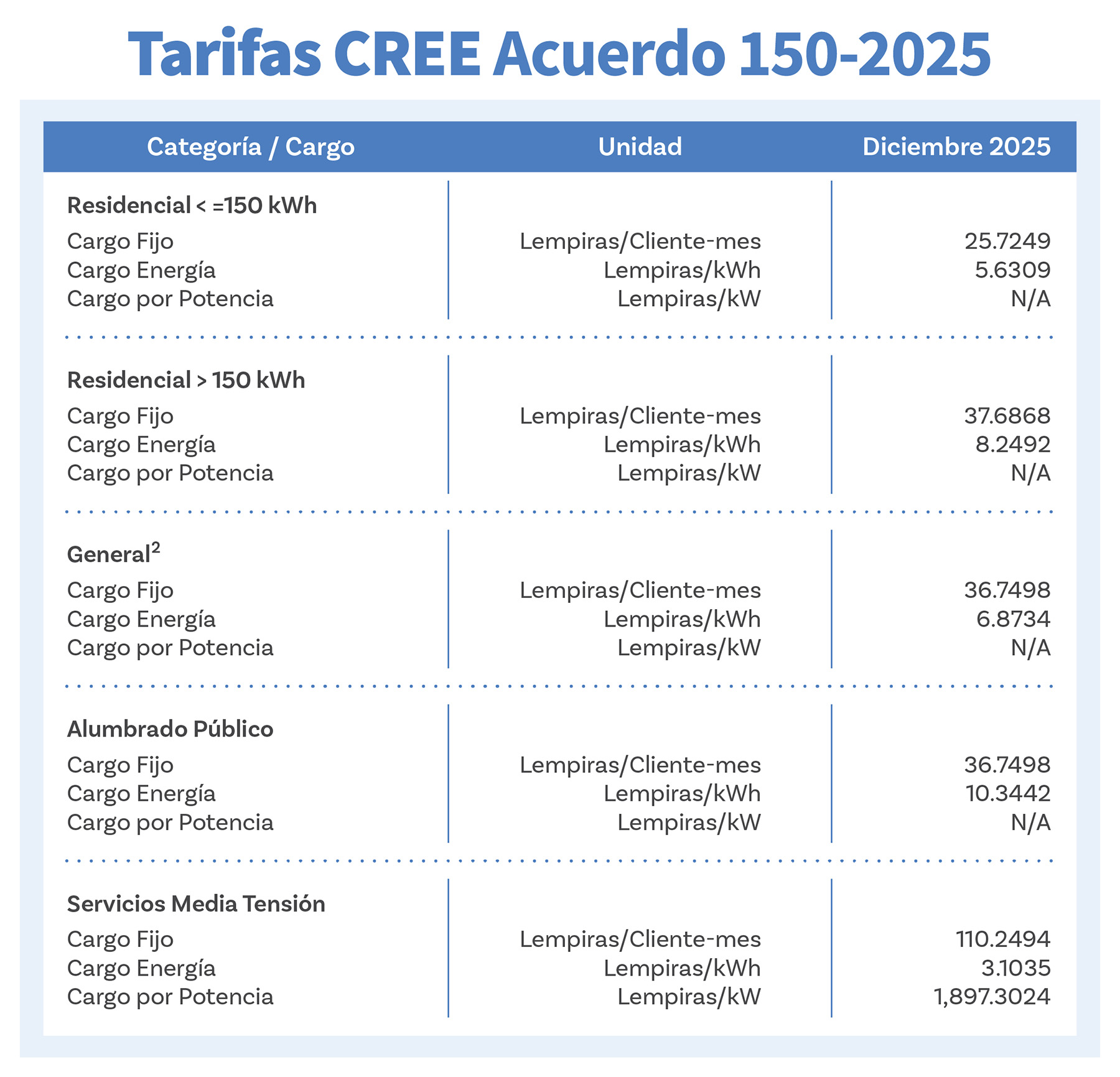 TARIFAS VIGENTES 2026